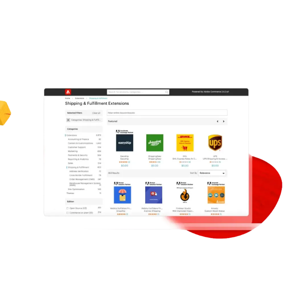 Adobe Commerce es una plataforma de código abierto que proporciona amplias opciones de personalización y una biblioteca de extensiones. Permite a los vendedores B2B gestionar múltiples marcas y cuentas de socios, facilitando procesos como pedidos rápidos mediante SKU o CSV.